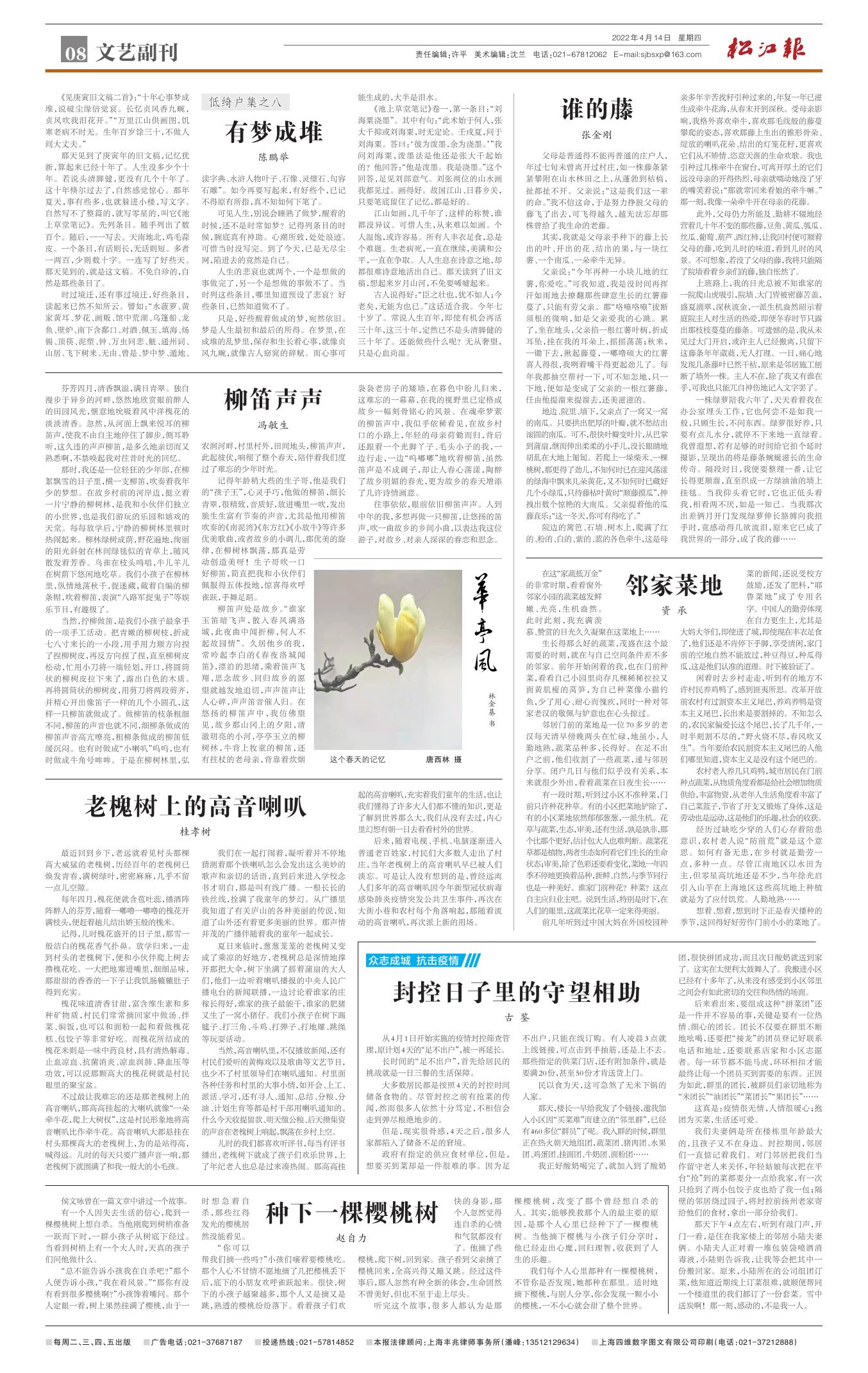 柳笛声处是故乡。“谁家玉笛暗飞声,散入春风满洛城,此夜曲中闻折柳,何人不起故园情”。久居他乡的我,常吟起李白的《春夜洛城闻笛》,漂泊的思绪,乘着笛声飞翔,思念故乡、回归故乡的愿望就越发地迫切,声声笛声让人心碎,声声笛音催人归。在悠扬的柳笛声中,我仿佛望见,故乡那山冈上的夕阳,清澈明亮的小河,亭亭玉立的柳树林,牛背上牧童的柳笛,还有拄杖的老母亲,背靠着炊烟袅袅老房子的矮墙,在暮色中盼儿归来,这难忘的一幕幕,在我的视野里已定格成故乡一幅刻骨铭心的风景。在魂牵梦萦的柳笛声中,我似乎依稀看见,在故乡村口的小路上,年轻的母亲荷锄而归,背后还跟着一个光脚丫子、毛头小子的我,一边行走,一边“呜嘟嘟”地吹着柳笛,虽然笛声是不成调子,却让人春心荡漾,陶醉了故乡明媚的春光,更为故乡的春天增添了几许诗情画意。