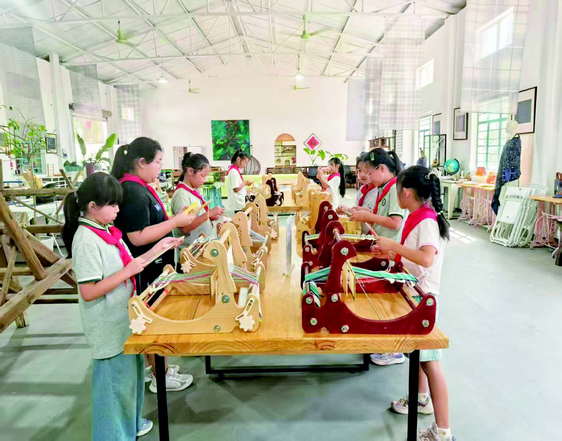 作为本土特色鲜明的传统纺织技艺,丁娘子布承载着深厚的历史与匠人智慧。据悉,本次课程共分为四期,从棉花的生长,到纱线的纺制,再到织布机的操作,最后完成自己的作品。为了让小朋友们轻松入门,基地特别设计了贴合小学生认知水平的课程内容,每期主题独立且趣味十足,同时适当降低了动手环节的操作难度,确保每名孩子都能“玩得转、学得进”。“孩子们都很热情,学习的积极性都很高。”基地的教学老师王颖欣慰地说。
