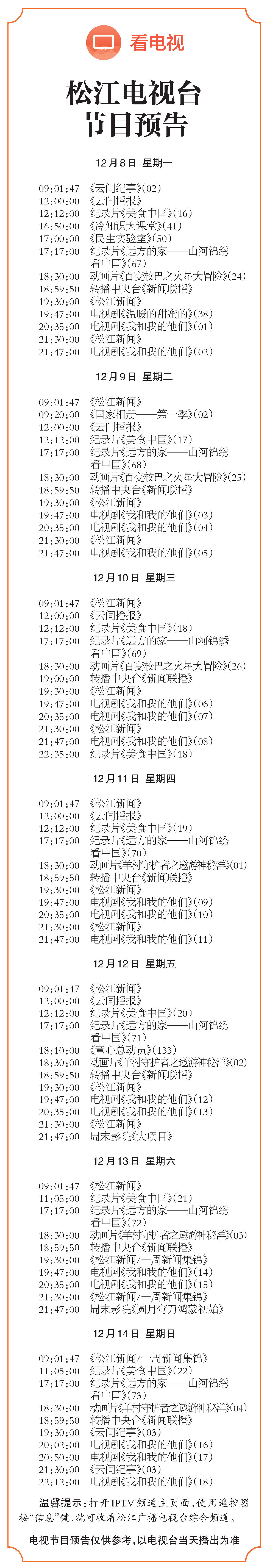 松江电视台节目预告
