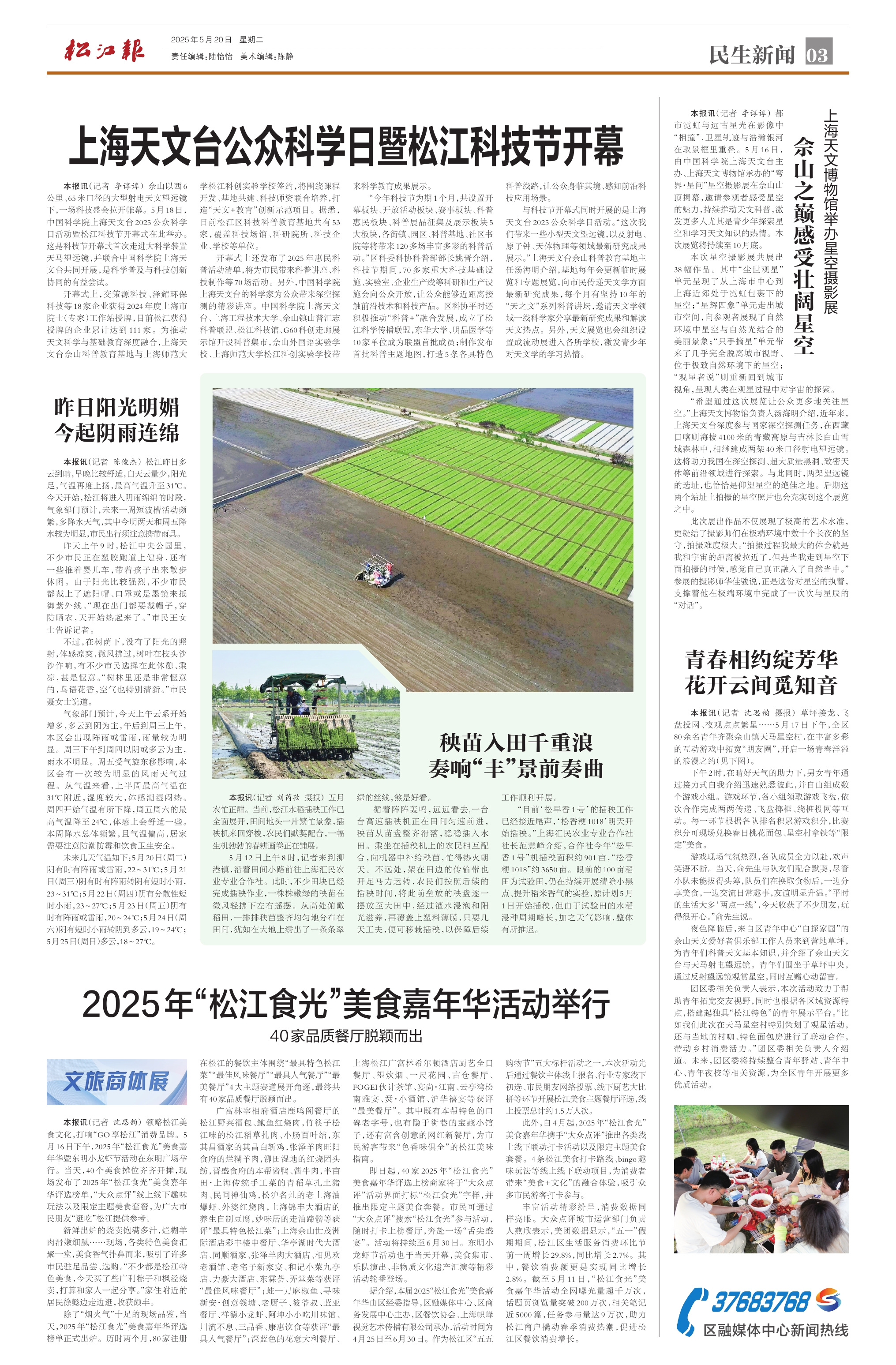 丰富活动精彩纷呈,消费数据同样亮眼。大众点评城市运营部门负责人燕欣表示,美团数据显示,“五一”假期期间,松江区生活服务消费环比节前一周增长29.8%,同比增长2.7%。其中,餐饮消费额更是实现同比增长2.8%。截至5月11日,“松江食光”美食嘉年华活动全网曝光量超千万次,话题页浏览量突破200万次,相关笔记近5000篇,任务参与量达9万次,助力松江商户撬动春季消费热潮,促进松江区餐饮消费增长。