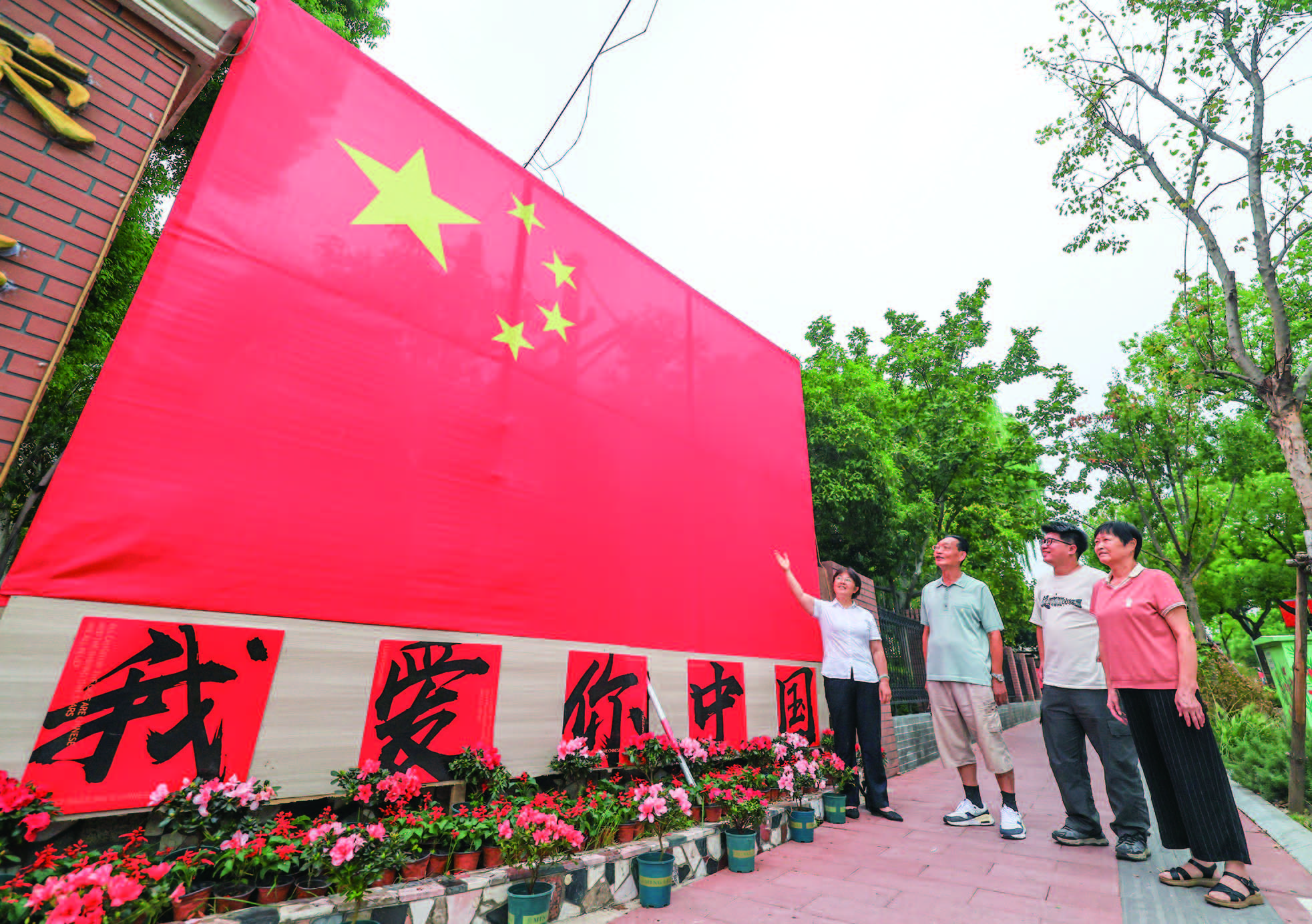 9月30日,国庆节来临之际,荣乐小区南大门东侧打造的巨幅国旗墙亮相。该国旗墙采用防水缎面材质制作,在阳光下光彩夺目。国旗墙下方“我爱你中国”五个大字醒目有力,为居民营造出热烈、庄重的节日氛围。